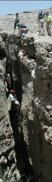 Later on, by the fire that night, Jeff told us, as long as we were all confessing how scared we were, why he didn't repeat the adventure he himself had experienced just a few weeks before (Jeff had guided us in, and had acted as our topside support). He said, "When you first go in, you think to yourself, 'Wow, I'm really dropping myself into something neat here!' when really what you've done is you've dropped yourself into some really deep shit, and you're just beginning to realize it, because now what you've got to do is get yourself out." And we shared his sardonic laughter, as we understood by then how the joke had been on us. It was to avoid reenacting that moment of nail-biting realization that Jeff had brought us out to experience the thrill but had passed on repeating it himself. And that's hitting the nail on the head, because having been utterly unprepared for what 178 meters means in abseiling terms, you are now forced to deal with what that means you have to do to get back out.